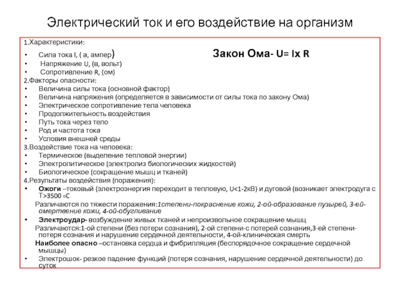Слайд 5Электрический ток и его воздействие на организм