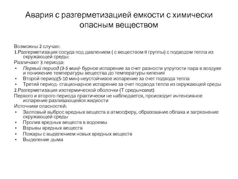 Слайд 18Авария с разгерметизацией емкости с химически опасным веществом