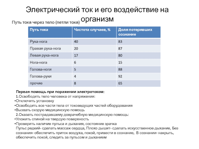 Слайд 7Электрический ток и его воздействие на организм