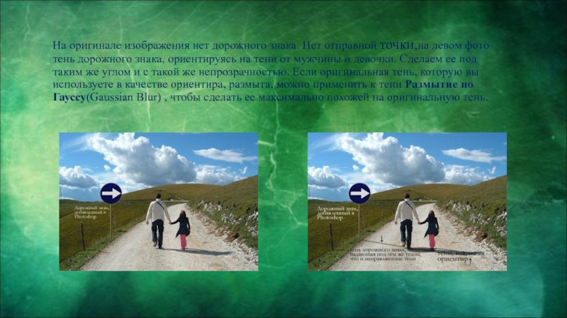 Слайд 5На оригинале изображения нет дорожного знака. Нет отправной точки,на левом