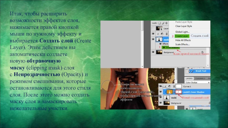 Слайд 19Итак, чтобы расширить возможности эффектов слоя, нажимается правой кнопкой мыши