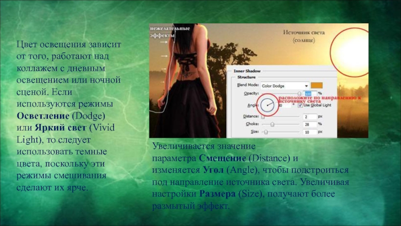 Слайд 18Цвет освещения зависит от того, работают над коллажем с дневным