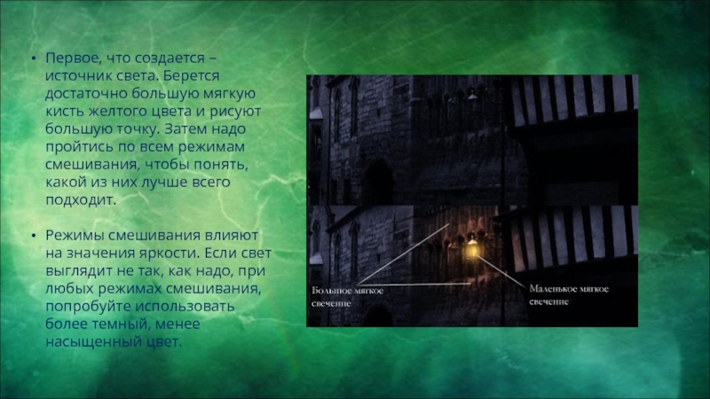 Слайд 13Создание такого рода световых эффектов в Photoshop не сложно, но