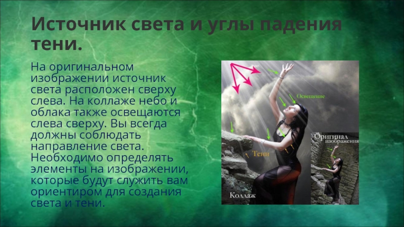 Слайд 2Тени – очень важный аспект в любом коллаже. Это же