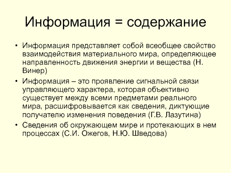 Информация представляет собой всеобщее свойство взаимодействия материального мира,