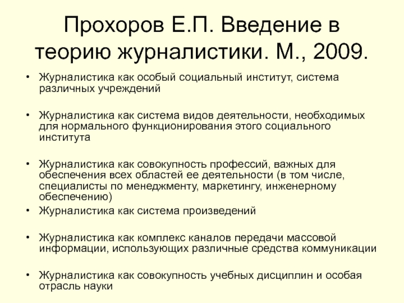 Слайд 15Прохоров Е.П. Введение в теорию журналистики. М., 2009.