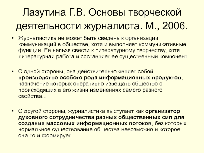 Слайд 16Лазутина Г.В. Основы творческой деятельности журналиста. М., 2006.