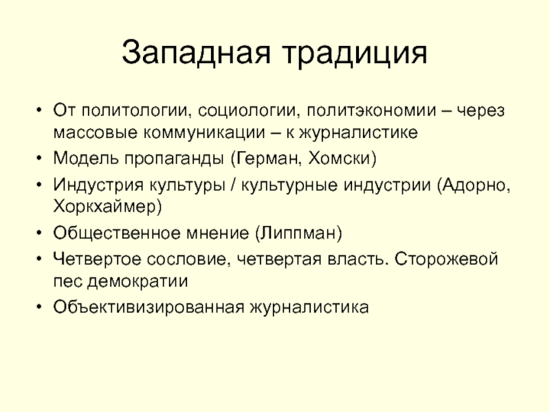От политологии, социологии, политэкономии – через массовые коммуникации –