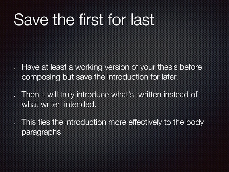 The thesis statement is the last sentence in the introduction paragraph and it describes what the essay is about.