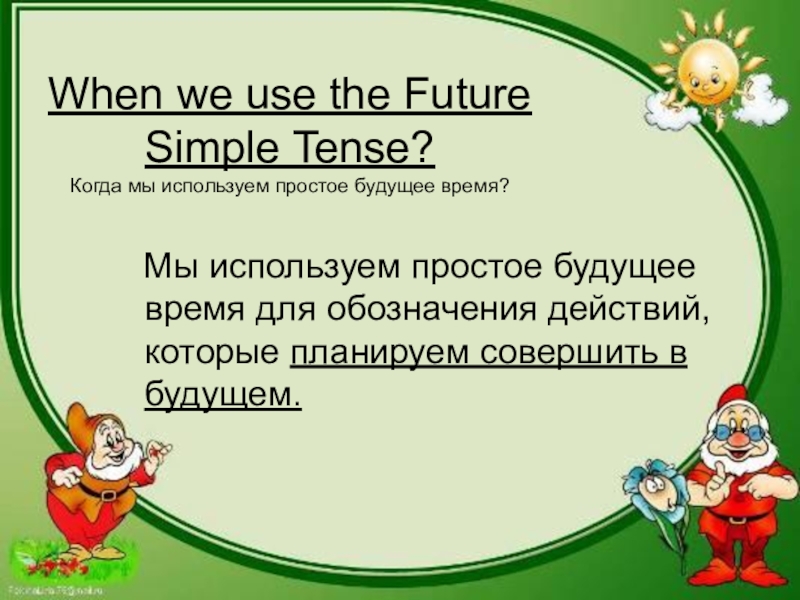 Слайд 2When we use the Future Simple Tense? Когда мы используем простое