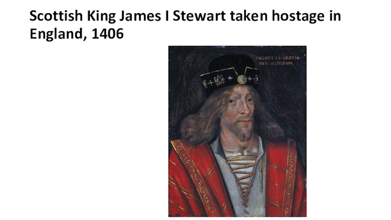 Слайд 11Scottish King James I Stewart taken hostage in England, 1406