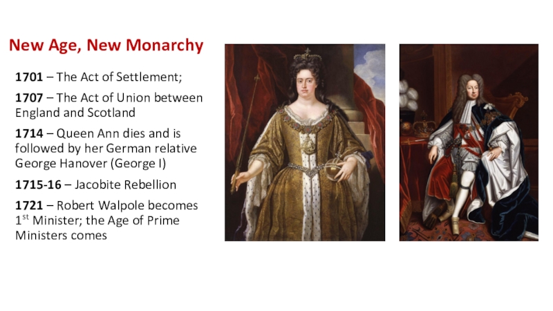 New Age, New Monarchy1701 – The Act of Settlement;1707 – The Act of Union between England and
