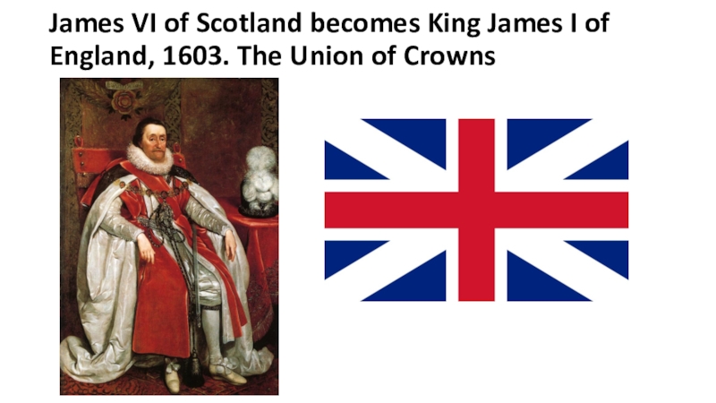 Слайд 28James VI of Scotland becomes King James I of England,