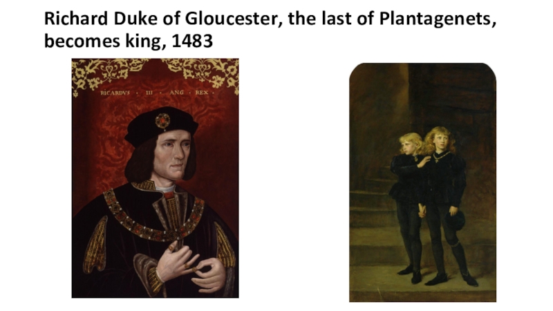 Слайд 19Richard Duke of Gloucester, the last of Plantagenets, becomes king,