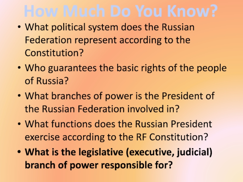 of the people of Russia?What branches of power is the President of the Russian Federation involved in?
