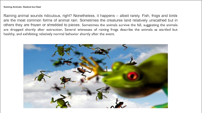 Слайд 2Raining Animals: Radical but Real