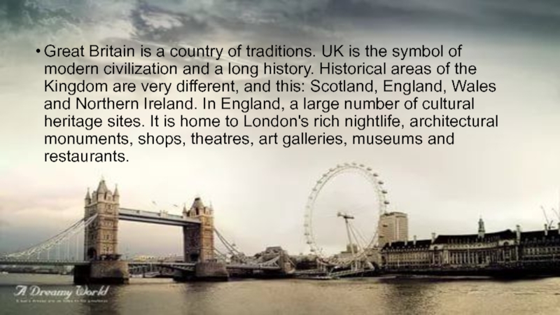 Great Britain is a country of traditions. UK is the symbol of modern civilization and a long