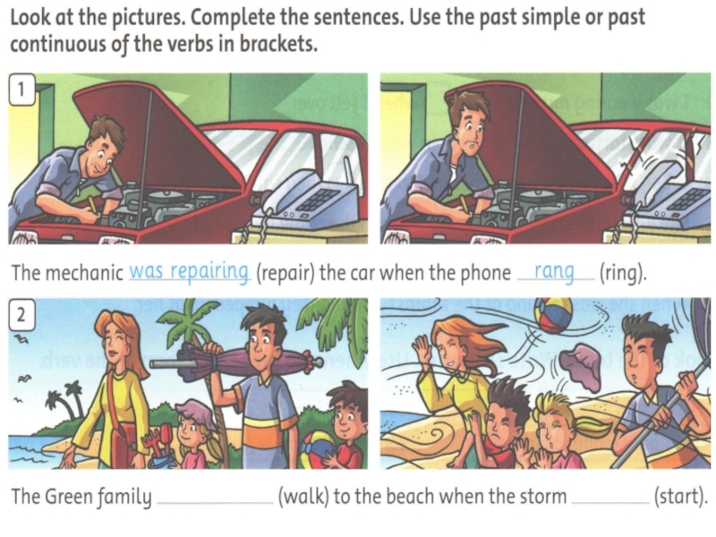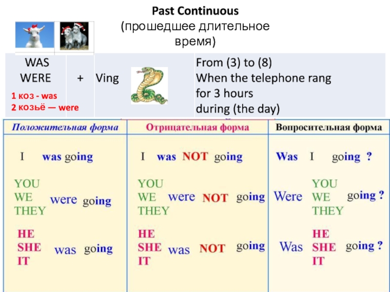 Past Continuous(прошедшее длительное время) Past    Present   Future1 коз - was2 козьё —