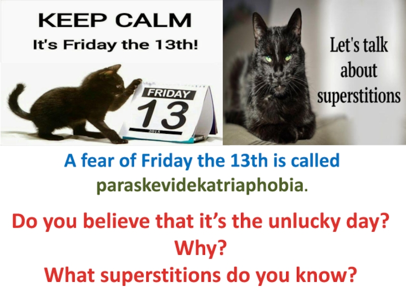 Do you believe that it’s the unlucky day?Why?What superstitions do you know?A fear of Friday the 13th