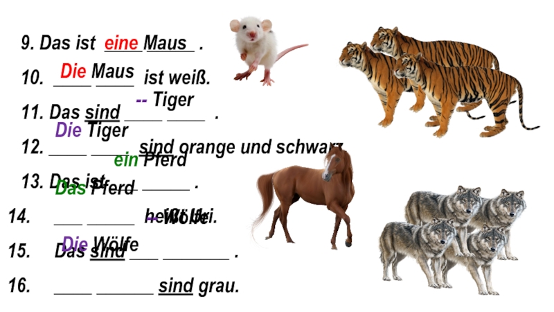 9. Das ist ____ _____ .10. ____ ____ ist weiß.11. Das sind ____ ____ . 12. ____