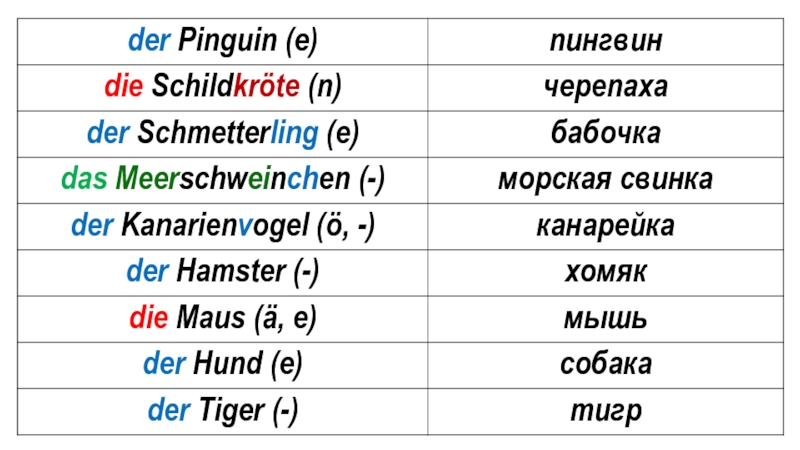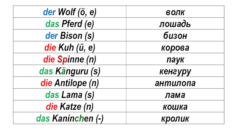 Hausaufgabeслова «Животные» (1 часть) - наизусть