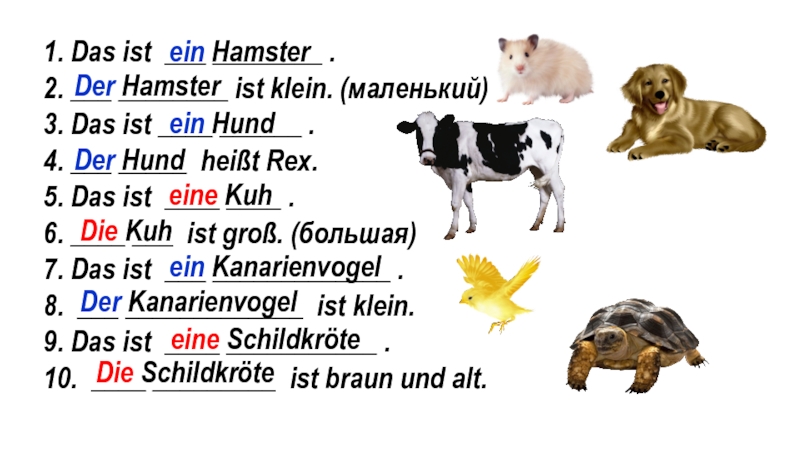 1. Das ist ___ ________ . 2. ___ ________ ist klein. (маленький)3. Das ist ____ ______ .