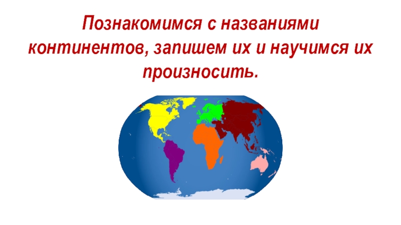 Познакомимся с названиями континентов, запишем их и научимся их произносить.
