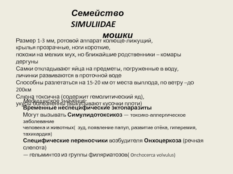 Специфические переносчики возбудителя Онхоцеркоза (речная слепота)