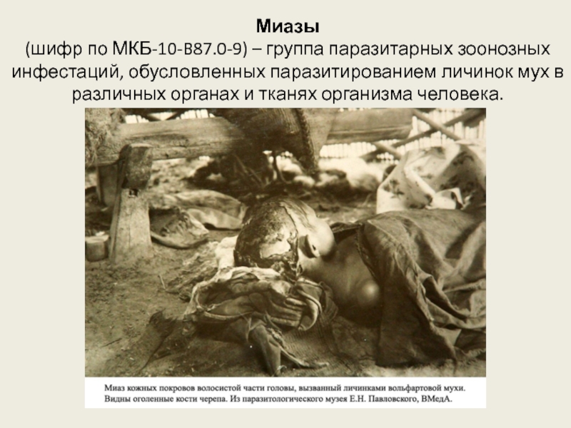 Паразитические падальные мухи могут развиваться в некротизированных тканях и вызывать миазы у животных и людей.