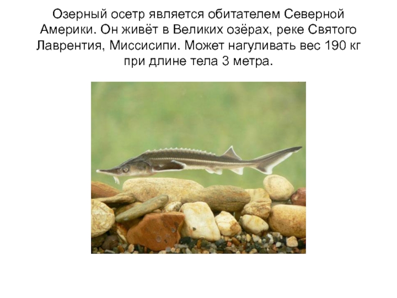 Слайд 6Озерный осетр является обитателем Северной Америки. Он живёт в Великих