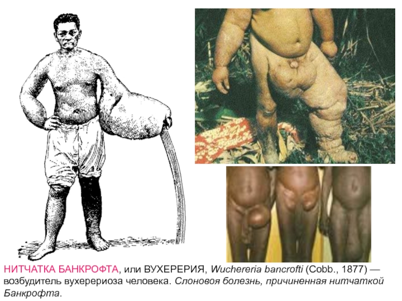 Слайд 15НИТЧАТКА БАНКРОФТА, или ВУХЕРЕРИЯ, Wuchereria bancrofti (Cobb., 1877) — возбудитель