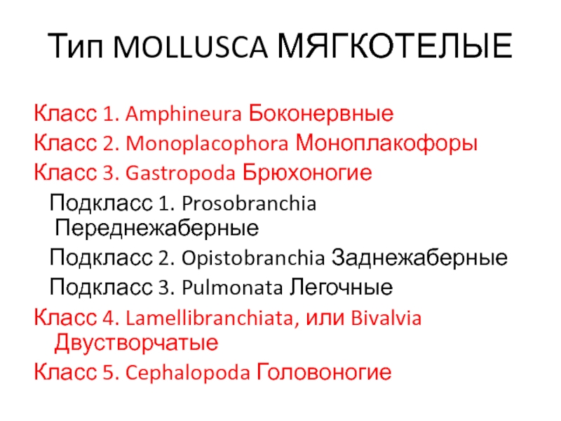 Класс 5. Cephalopoda Головоногие