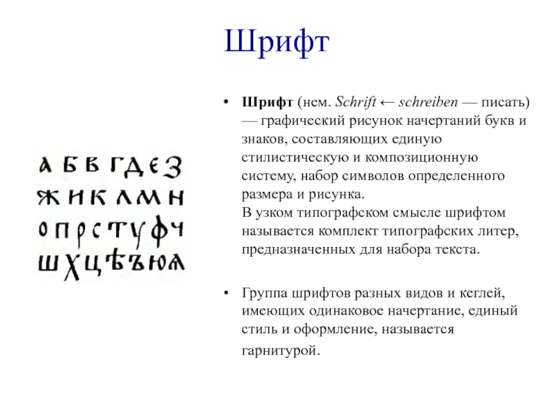 Шрифт (нем. Schrift ← schreiben — писать) — графический рисунок начертаний
