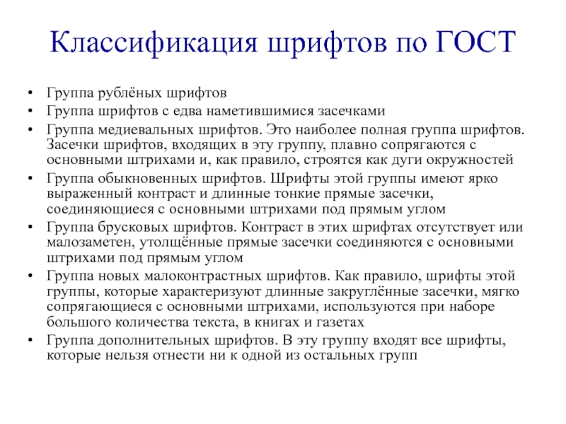 Слайд 10Классификация шрифтов по ГОСТ
