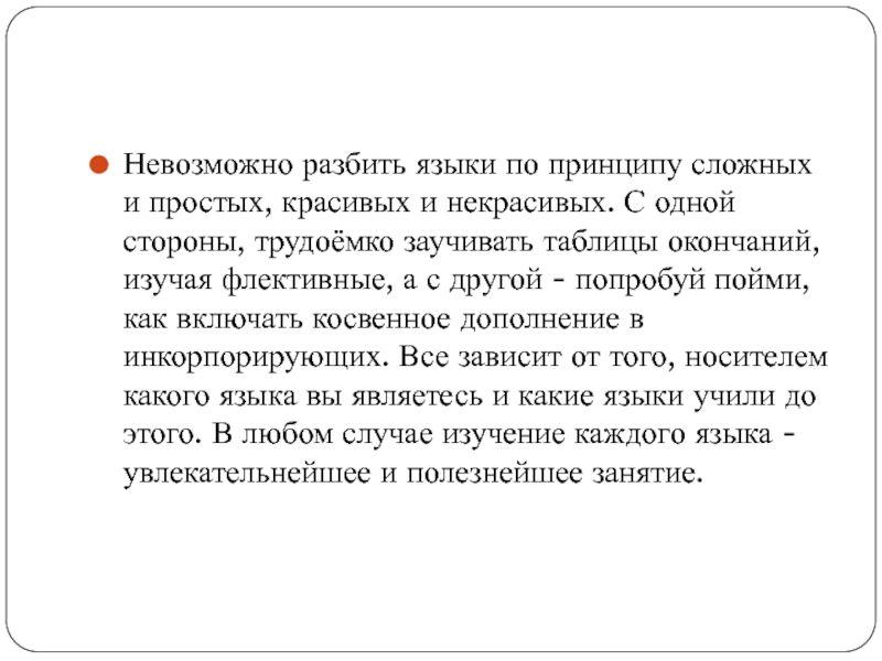 Слайд 8Невозможно разбить языки по принципу сложных и простых, красивых и