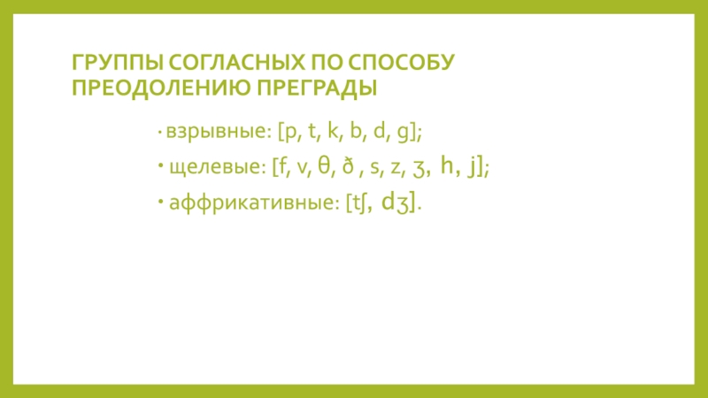 Слайд 13ГРУППЫ СОГЛАСНЫХ ПО СПОСОБУ ПРЕОДОЛЕНИЮ ПРЕГРАДЫ
