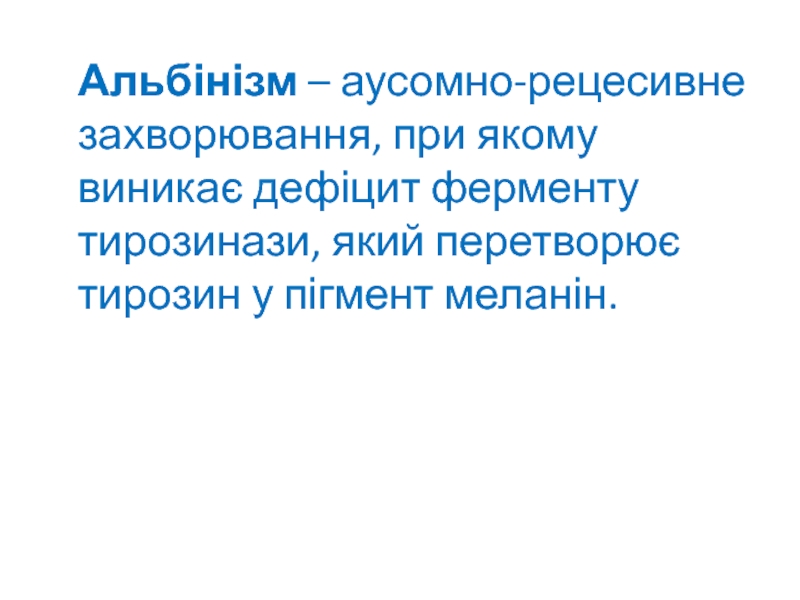 Слайд 20 Альбінізм – аусомно-рецесивне захворювання, при якому виникає дефіцит