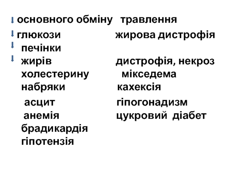 Зменшується утворення меланіну, адреналіну, тироксину.
