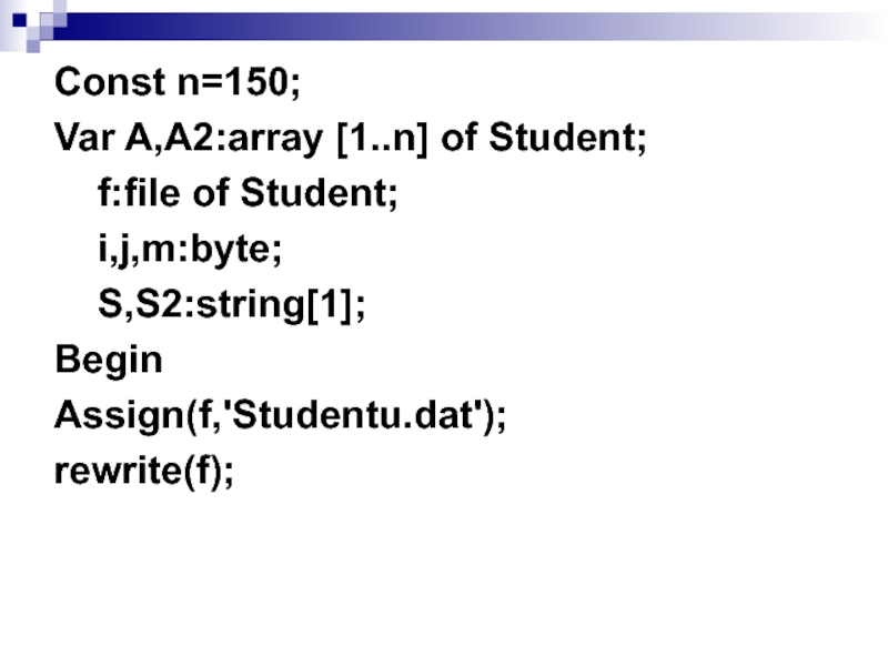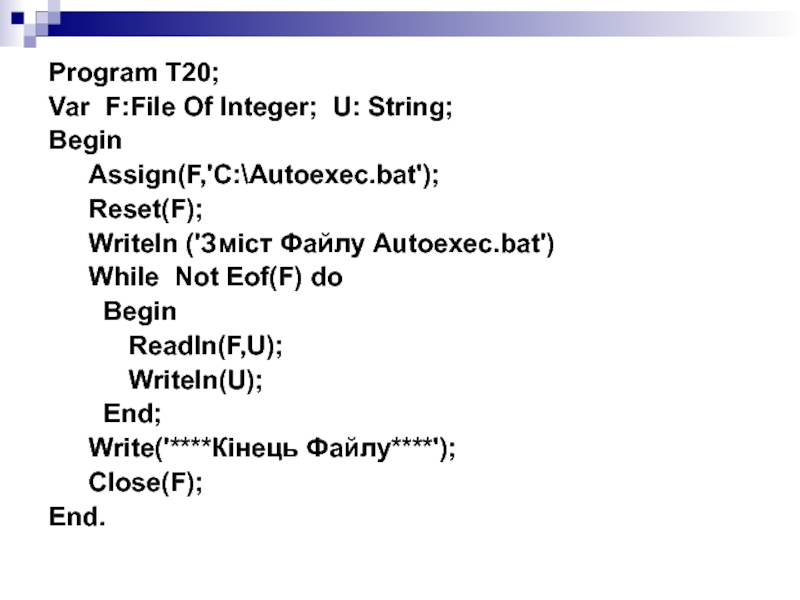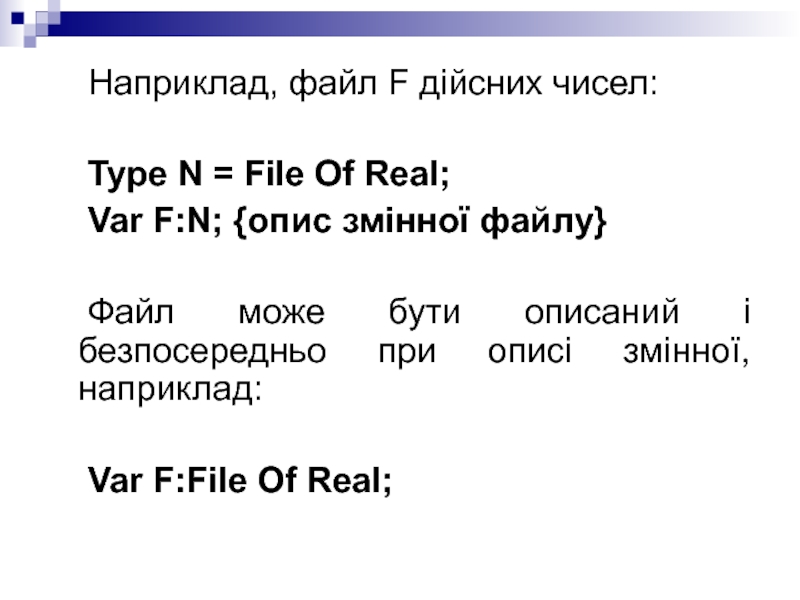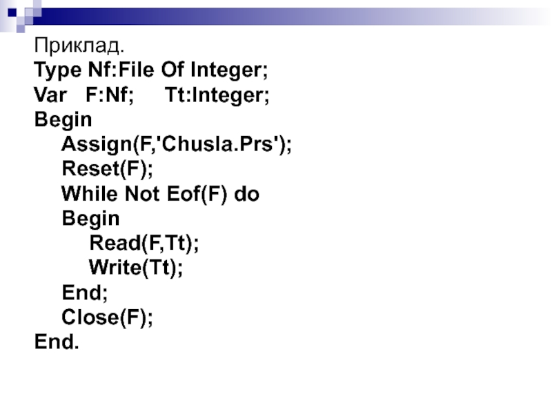 Слайд 9 Тут F - ім'я змінної типу File з якою тепер