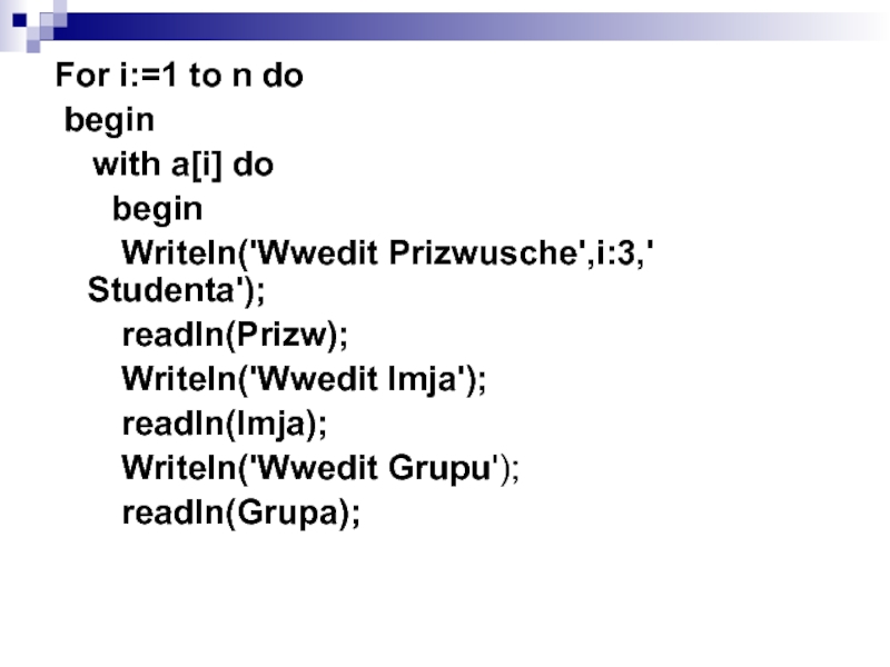 Writeln('Wwedit Prizwusche',i:3,' Studenta');