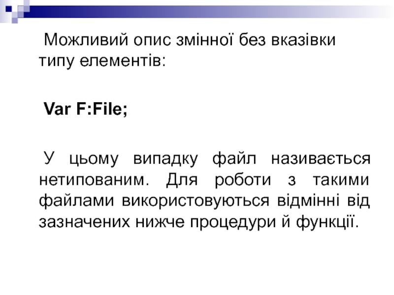 випадку файл називається нетипованим. Для роботи з такими файлами використовуються