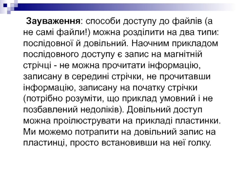 Слайд 24 Зауваження: способи доступу до файлів (а не самі файли!) можна