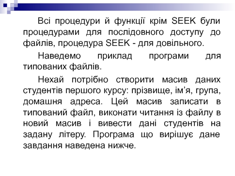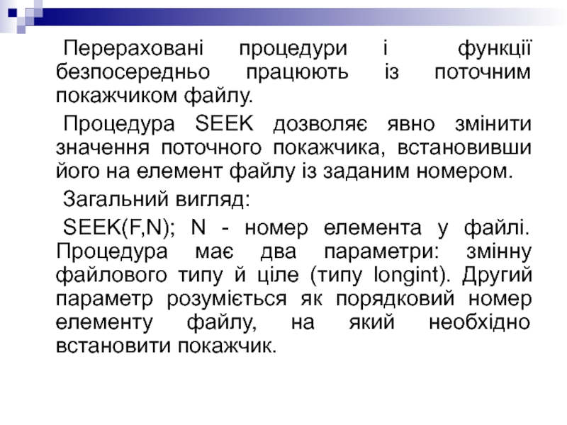 Слайд 25 Всі процедури й функції крім SEEK були процедурами для послідовного