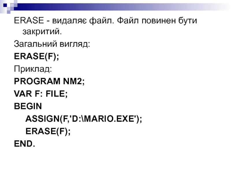 Слайд 20ERASE - видаляє файл. Файл повинен бути закритий.