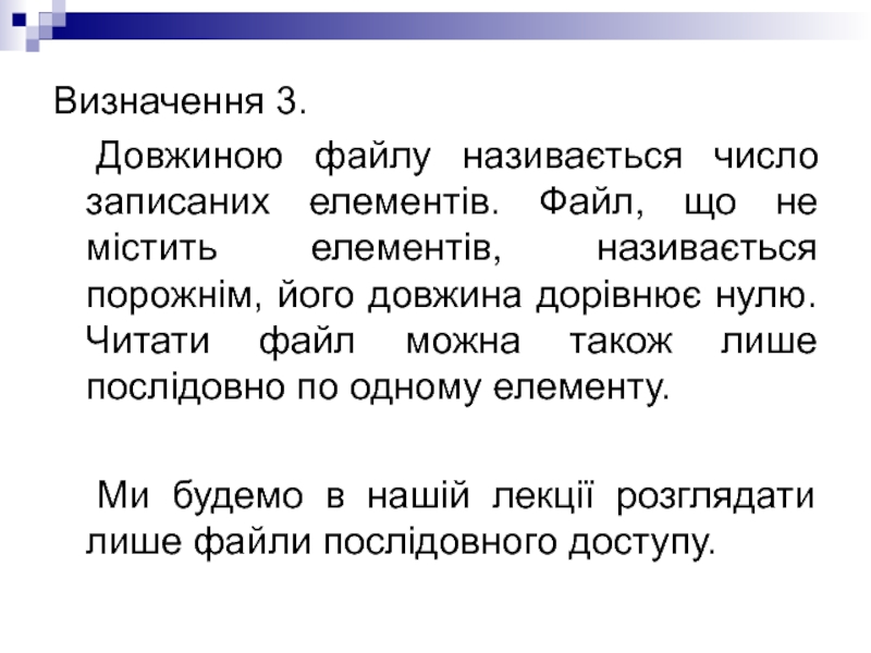 Ми будемо в нашій лекції розглядати лише файли послідовного доступу.