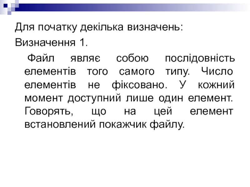 лише один елемент. Говорять, що на цей елемент встановлений покажчик файлу.