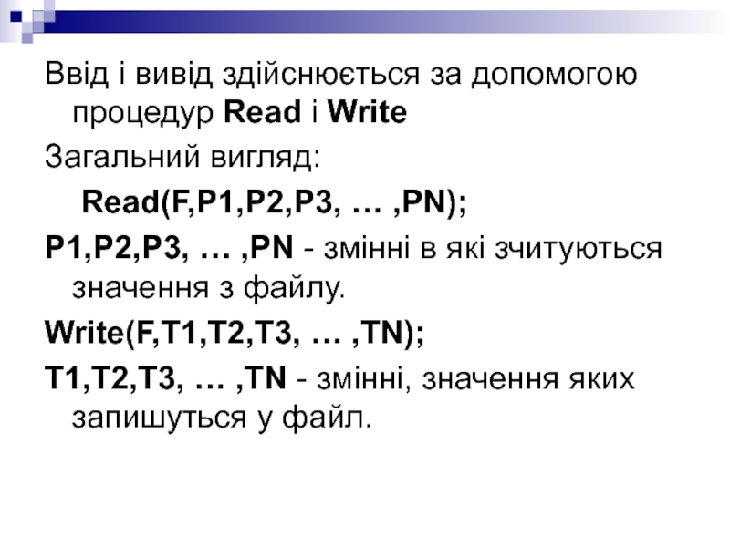 Слайд 14Ввід і вивід здійснюється за допомогою процедур Read і Write