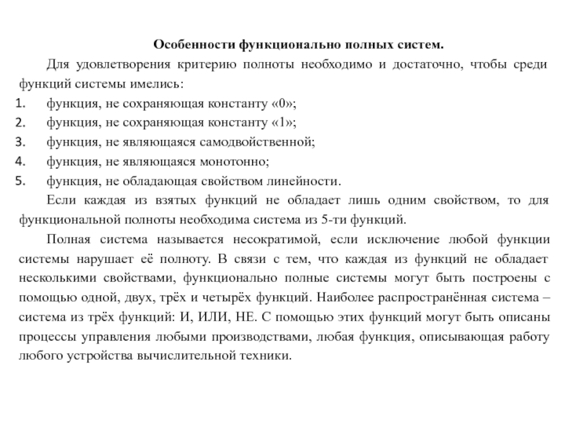 Особенности полных систем.