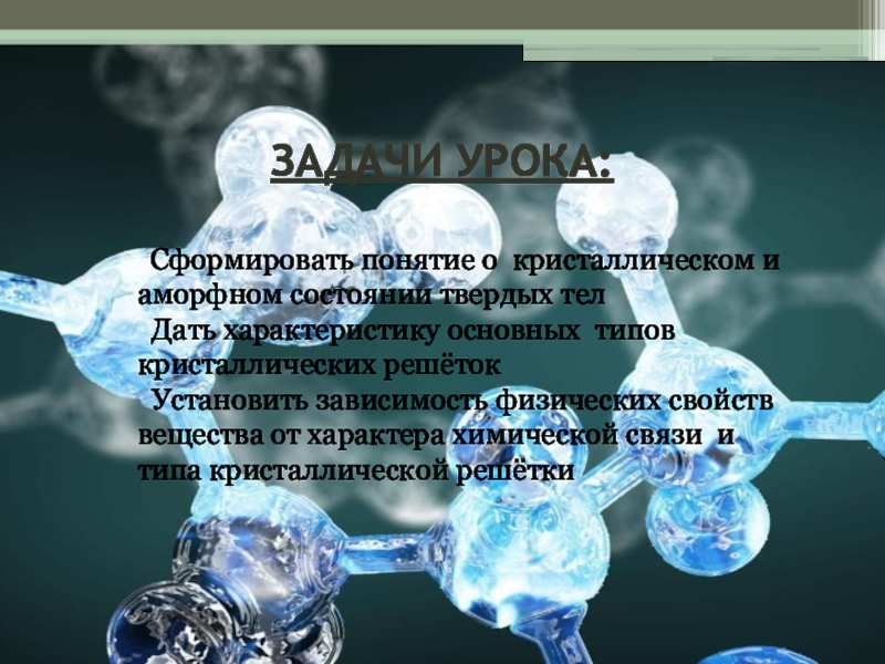 кристаллических решётокУстановить зависимость физических свойств вещества от характера химической связи и типа кристаллической решётки