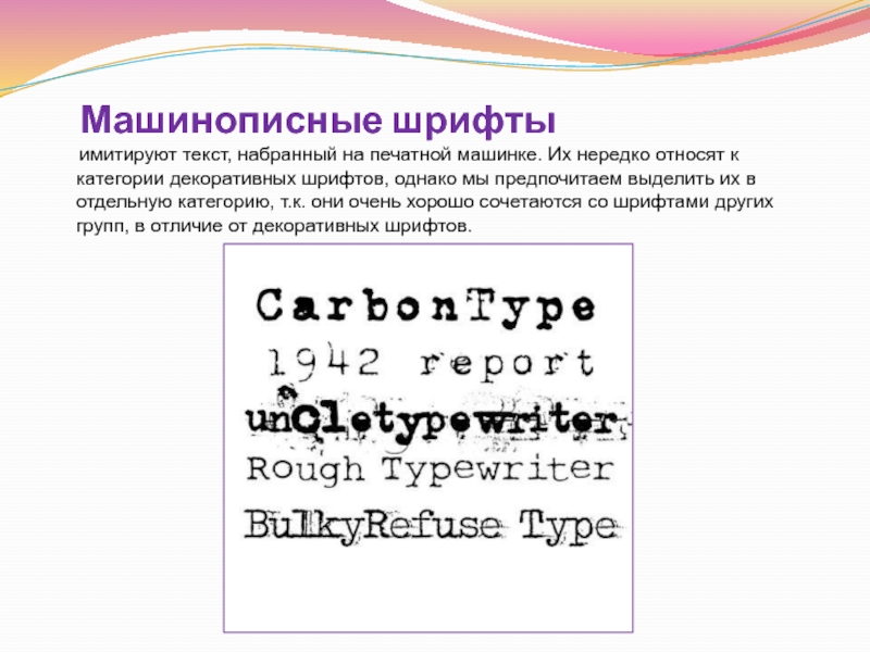 Старый стиль – имитирует письмо клинообразным пером, а потому поперечные засечки располагаются под углом и переход от толстой линии к тонкой имеет среднюю выразительность, нажим диагональный. Эти шрифты неброские, а потому они идеальны для набора длинного текста, т.к. в этом случае ничто не будет мешать чтению.